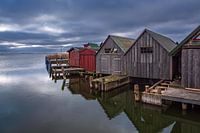 Boothuizen in de haven van Althagen aan de Fischland-Darß.