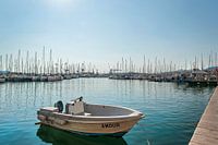 Dit motorbootje met de mooie naam "Amour" heb ik gefotografeerd in de haven van Toulon in Zuid Frankrijk, waar het lag aangemeerd aan de kade. De zon stond hoog aan de hemel en op de achtergrond zijn de masten van de zeiljachten zichtbaar. Het water van de Middellandse Zee kleurt mooi blauwgroen (turkoois).