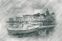 Bootje in de haven van Stavanger, Noorwegen van Rietje Bulthuis