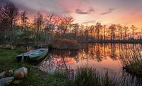 Bootje in het water tijdens zonsondergang dobbe Brandsloot Doezum Groningen