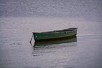 Op de Stour bij de plaats Manningtree, in het Verenigd Koninkrijk, liggen allemaal bootjes voor anker. Na deze plaats wordt de Stour een heel stuk smaller als riviertje. Dit groene bootje is één van de voor anker liggende exemplaren. Het ligt er te wachten op de gebruikers. Waarschijnlijk vissers uit de omgeving. Het bootje reflecteert…