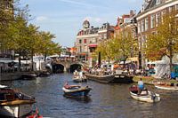 Koop de foto Bootjes en Markt in Leiden van Jan Kranendonk op canvas, aluminium dibond, (ingelijste) fotoprint, behang en ArtFrame, op maat geprint in Fine-Art kwaliteit.
