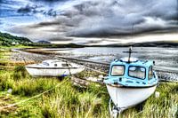 In een baai op The Isle of Skye liggen twee bootjes op het strand.
