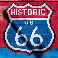 Koop dit Popart kunstwerk Bord Route 66 USA van Dieter Walther als print op canvas, aluminium dibond, (ingelijste) fotoprint, behang en ArtFrame. Voor jou op maat geprint in Fine-Art kwaliteit.