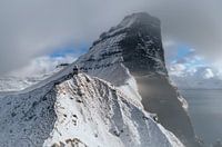 Kallur vuurtoren op Kalsoy eiland met Borgarin berg achter, Faeröer eilanden