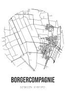 Zwart-witte landkaart, stratenplan of plattegrond van Borgercompagnie. Borgercompagnie is gelegen in de gemeente Veendam, provincie Groningen. Op de stadskaart zijn alle openbare wegen in Borgercompagnie opgenomen. Verder is de kaart voorzien van de coördinaten van het centrum van Borgercompagnie.