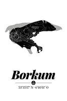 Borkum - het vakantie-eiland voor de kust van Oost-Friesland als decoratief kaartontwerp. Minimalistisch Designkaart voor Borkum-fans - het stijlvolle decoratie-idee, ook als cadeau.
