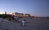 Ochtendstemming op het strand van Borkum, Oost-Friese eilanden, Noordzeekust van Nedersaksen, Duitsland
