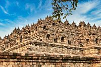 De Borobudur is gelegen bij de Merapi, de meest actieve vulkaan van Indonesië, en is gebouwd in…