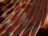 Prachtig gedetailleerde borstvin van een Gewone Zeedonderpad in het Grevelingenmeer in Zeeland.