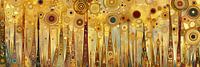 "Bos der Echo's" neemt ons mee op een mystieke reis door een woud van gouden totems en eeuwenoude symbolen. De sierlijke, langgerekte vormen suggereren een samenkomen van verhalen en wijsheid, die zich uitstrekken naar de hemel. Deze harmonische compositie van cirkels en lijnen bootst de echo's na van voorouderlijke stemmen en de fluisteringen van de natuur. Het is een werk dat de toeschouwer uitnodigt tot een moment van bezinning en het verkennen van de onzichtbare verbindingen tussen de oude culturen en de moderne droomwereld.