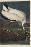 Een vogelafbeelding gemaakt door de beroemde vogelonderzoeker en kunstenaar John James Audubon. Gezien in de tentoonstelling Vogelpracht in Teylers Museum in Haarlem. Gedigitaliseerd vanuit het originele boek: Birds of America, te zien bij Teylers Museum.