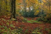 Een bos in Herfstkleuren bij een opkomende zon. Stilte, en warme kleuren voeren de boventoon in deze tijd van het jaar.