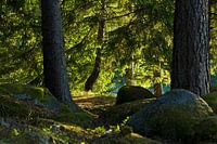 Bos met bemoste stenen in Zweden