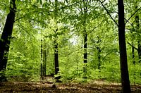 Een foto van een bos met beukenbomen in de lente. De bladeren van de bomen zijn net uitgekomen en de zon maakt er een fris en vrolijk beeld van. Dat is het mooie aan loofbos. Ik hou vooral van Beuken die ook dicht bij de grond nog takken met bladeren maken. Foto is gemaakt in de Emmerdennen in Emmen.
