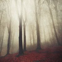 Bosscène op een mistige herfstochtend - textuurfotografie in retrolook