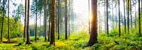Helder, licht ondergelopen sparrenbos in Duitsland