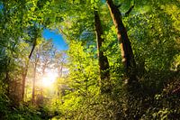 Prachtige natuur in de zomer. Bos bij Velbert in het licht van de ondergaande zon.