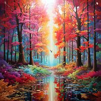 Unieke Bos kleurrijk schilderij met een artistieke stijl. Met prachtige kleurtinten en een uniek ontwerp maakt dit tot een stijlvolle fotoprint die prachtig staat in elke ruimte.