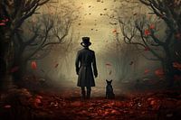 Donkere mistige sfeer. Handen in zijn jaszak.