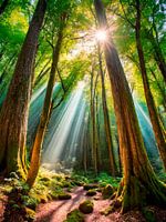 Bos met zonnestralen en natuur