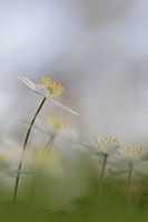 de fijne bosanemoon is op zijn mooist in het zonlicht, getrokken op een zo laag mogelijk standpunt door de vegetatie heen in het bos, meeldraadjes komen mooi tot hun recht bij macro fotografie met het zonlicht erop