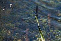 Bosbeek Juffer in de beek en druk bezig z'n territorium af te bakenen maar dan moet je ook af even uitblazen op een rietstengel. .deze drukke insecten zijn de hele dag bezig hun mannelijke concurrenten te verjagen waardoor het lijkt dat ze boven het stromende water dansen.