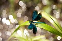 De bosbeekjuffer is een prachtige libel met donkere, blauw-metallic vleugels. Deze mooie soort fotografeerde ik in zijn typische habitat: een stromende beek. De schitteringen en de open vleugels maken dit een spectaculair beeld.