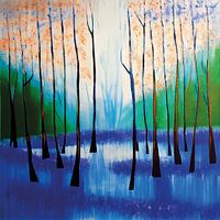 Het werk is op meesterlijke wijze de diepte van het bos vast gelegd. Je kunt zien hoe de bomen steeds dichter op elkaar staan naarmate je verder kijkt. De lucht boven het bos is lichtblauw met hier en daar een wolkje, wat erop duidt dat het een mooie zonnige dag is.