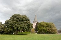 Bosham Sussex Bosham Holy Trinity Church bathed in sunshine with dark clouds beyond.It is claimed that parishioners have worshipped at Bosham Church for more than a thousand years.