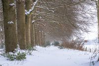 Een mooi vers sneeuwdek bedekt tijdens een winterochtend deze mooie laan aan de rand van het bos.