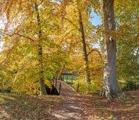 Boslaan met bruggetje in herfstkleuren, buitenplaats Jagtlust, s-Graveland, , Noord-Holland, Nederland