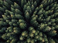Frisgroen naaldbos gefotografeerd vanuit de lucht