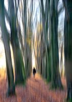 Eenzaam figuur iin een herfstachtige beukenlaan. De foto is uitgevoerd in ICM omzetting. Het vage beeld zorgt voor een tijdloze opname.