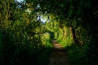 Een prachtig doorkijkje van het bos tijdens het gouden uur.