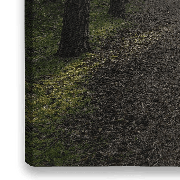 Een prachtige landschapsfoto van een bospad met dennen en zonnestralen, tijdens de zonsopkomst. Het prachtige licht van de opkomende zon schijnt prachtig door de dennen en de ochtendnevel en vormen fraaie zonneharpen. Het zachte licht van de opkomende zon en de fraaie zonnestralen geven het werk een fraaie schilderachtige sfeer. Het pad…