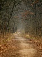 Het bos in de Achterhoek, Kotten gemeente Winterswijk is een van de mooiste plekjes van Nederland. Nu vroeg in het voorjaar is het nog een beetje kaal zonder blad aan de bomen en een beetje mistig weer. Het heeft prachtige paden en lanen om te wandelen en te fietsen. Het blad op de grond in de kleuren goud, geel, groen en bruin / oranje doet herfstachtig aan.