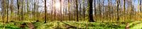 Bos in het voorjaar met veel kleine witte bloemen op de groene bosbodem.