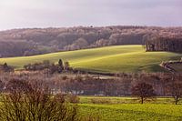 Gouden licht op de weilanden langs de bosrand van de Gulperberg boven Partij-Wittem in deze herfstsetting ,gefotografeerd vanaf het Eyserbos (Nederland).