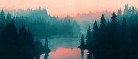 Een zachte overgang van diepe, mystieke bossen naar een glinsterend waterlichaam vangt de magie van de schemering. De harmonieuze blauwtinten en het zachte roze van de lucht creëren een rustgevende sfeer. Dit kunstwerk is ideaal voor de slaapkamer en nodigt je uit om te dromen en te ontspannen.
