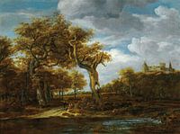 Bosrijk landschap met kasteel Bentheim, kring van Ruisdael of Meindert Hobbema