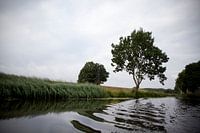 Varend over de Singelgracht bij de Zuidwal van Den Bosch is dit het uitzicht dat je kan krijgen over de polder Bossche Broek. De golfjes zijn veroorzaakt door de rondvaartboot, die toeristen rondleidt over de Binnendieze.
