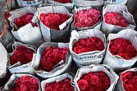 Rode rozen per bos in een krant verpakt op de Chatuchak Weekend Market in Bangkok. Deze enorme markt vind plaats op vrijdag, zaterdag en zondag en je kunt er echt van alles kopen. Super om een paar uur overheen te slenteren, een hapje te eten en souvenirs te kopen.