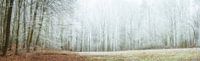 Een open plek in een winterbos in de koude vorst als panorama