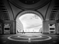Architectuur in zwart-wit: Het Harbor Hotel bij Rowes Wharf in Boston, Massachusetts.