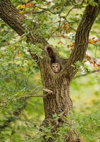 De herfst periode geeft altijd zoveel meer sfeer aan de omgeving. Zo ook bij deze bosuil die uit zijn roestplaats kijkt.