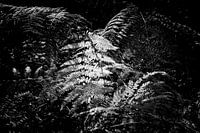 Zwart-wit beeld van een varen in een bos in de buurt van Heemstede, Noord-Holland.