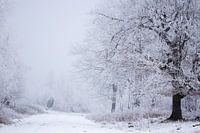 Koop dit landschapskunstwerk Bosweg met besneeuwde bomen van Karijn | Fine art Natuur en Reis Fotografie op canvas, aluminium dibond, (ingelijste) fotoprint, behang en ArtFrame, op maat geprint in Fine-Art kwaliteit.