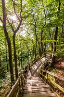 Een pad door het bos bij Møns Klint op het eiland Møn, Denemarken.