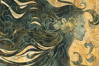 Details: vrouw, natuur, portret, bloem, goud, blauw, modern, mystiek, abstract, elegantie